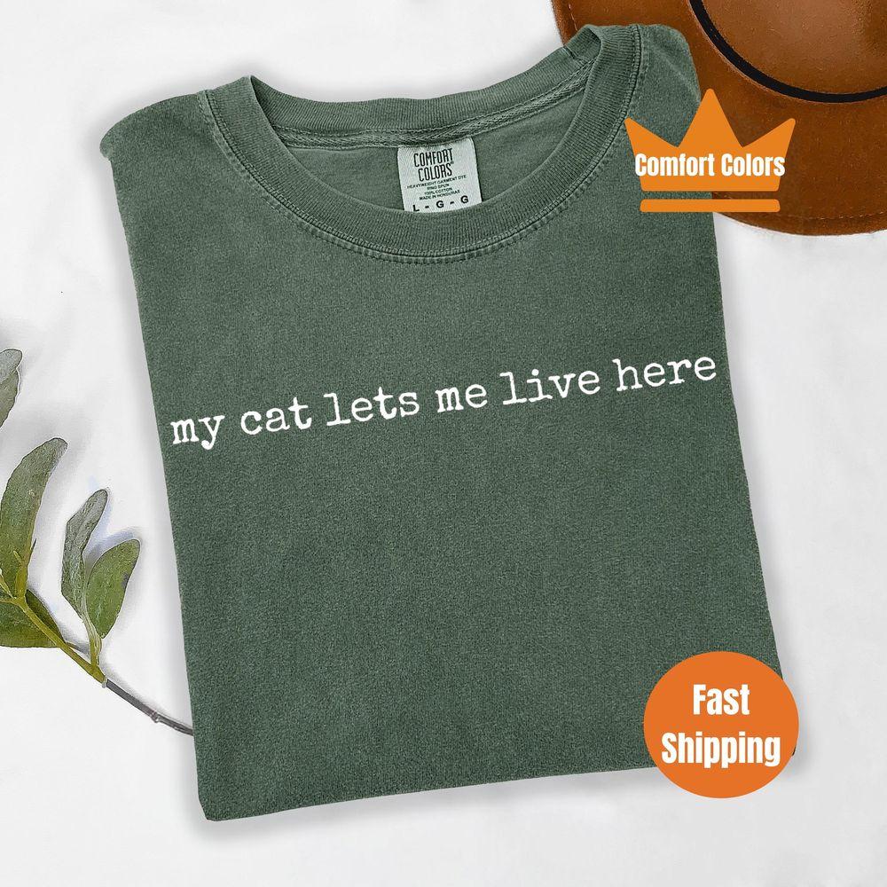 My Cat Lets Me Live Here Cat Mom Humor Funny Cat Mom Shirt