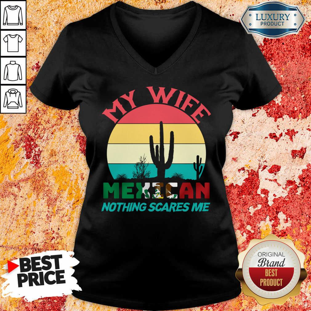 My Wife Mexican Nothing Scares Me Vintage V-neck