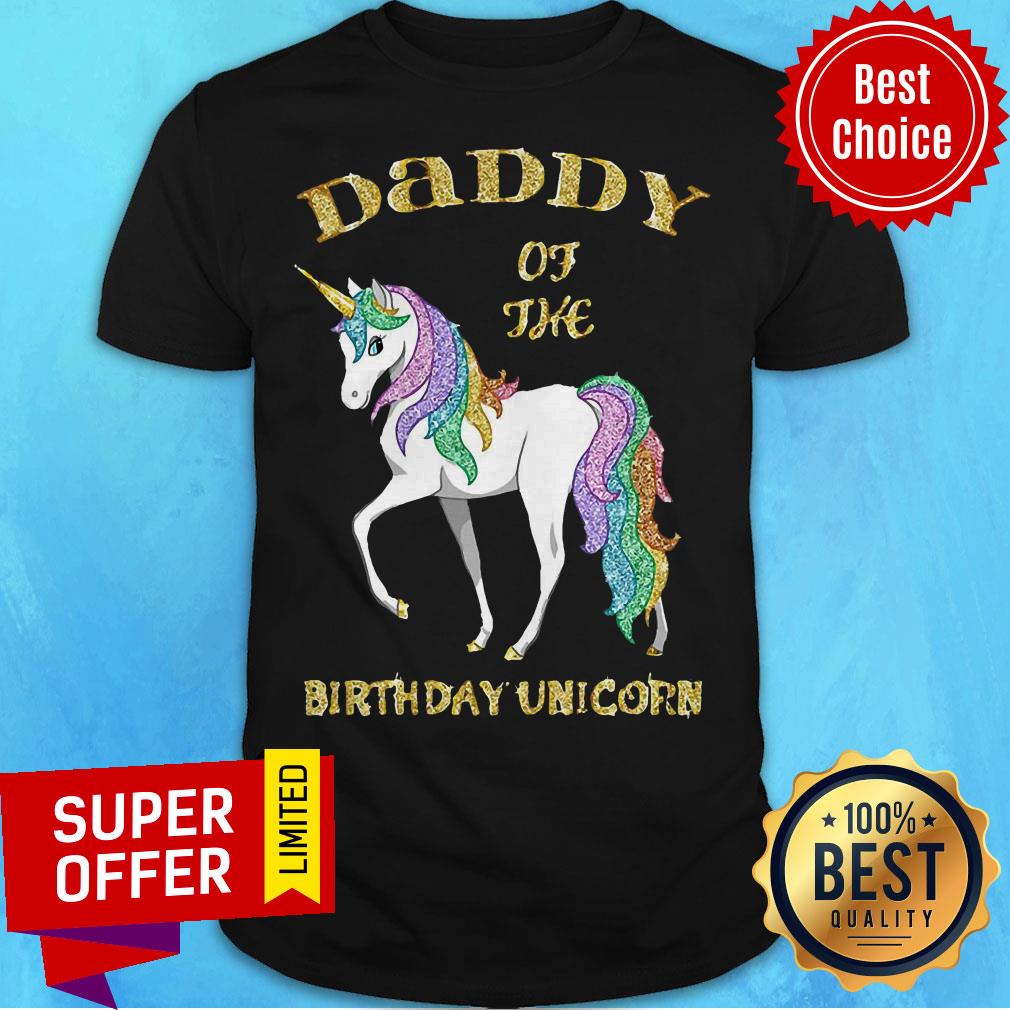 Official Daddy Of The Birthday Unicorn Rainbow And Gold Shirt