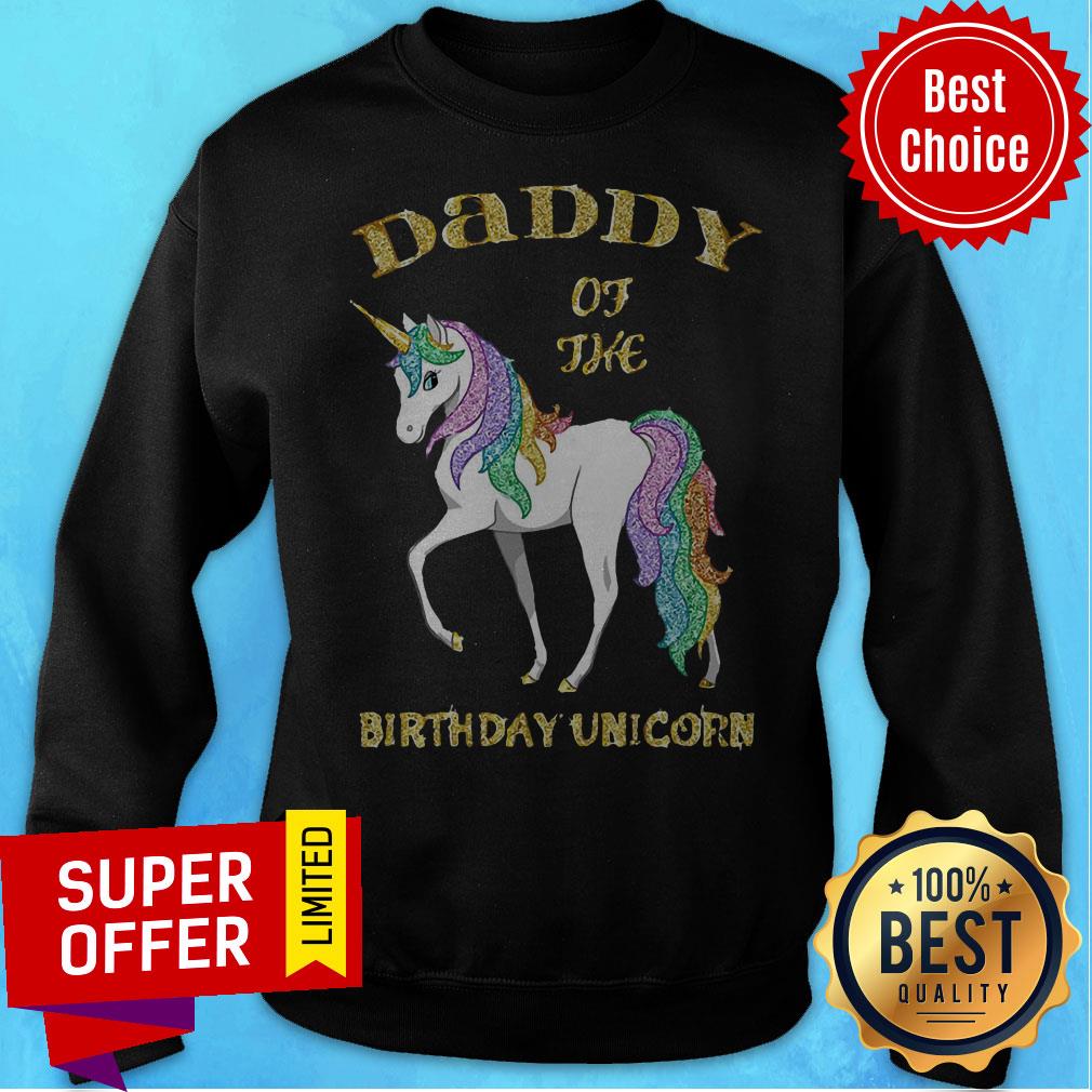 Official Daddy Of The Birthday Unicorn Rainbow And Gold Sweatshirt