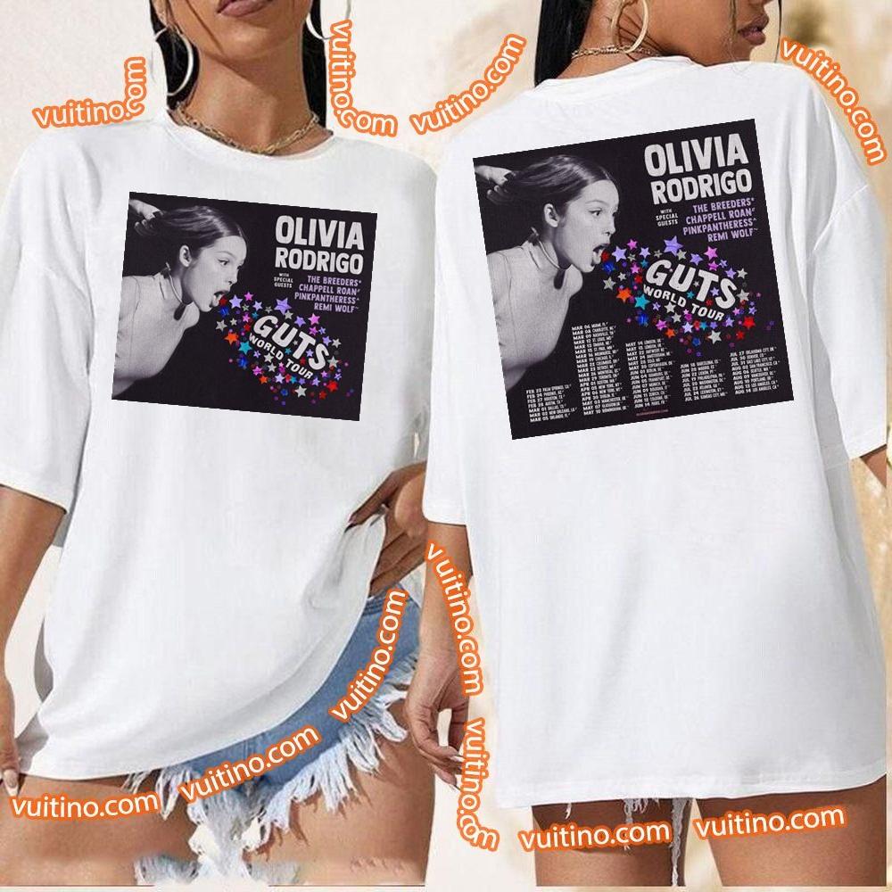 Olivia Rodrigo With The Breeders Chappell Roan Pinkpantheress Remi Wolf Guts World Tour Dates Double Sides Shirt