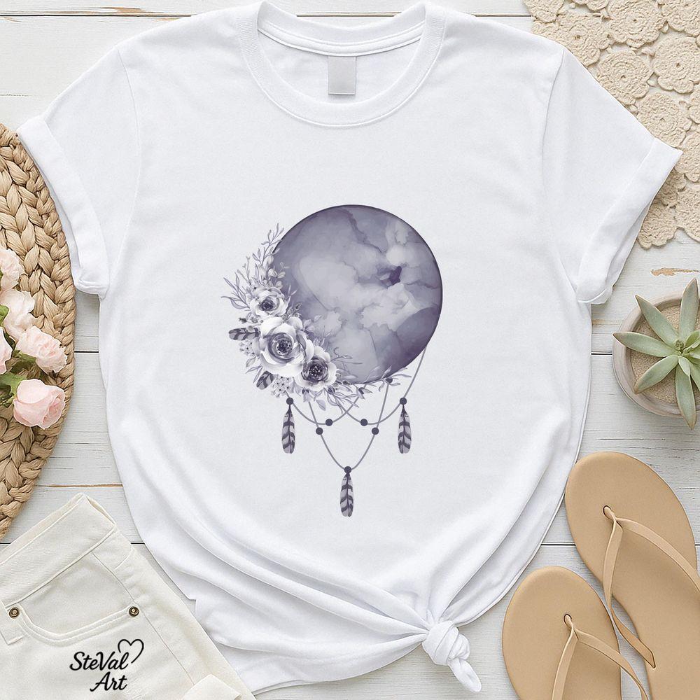 Full Moon Dreamcatcher Celestial Floral Feather Shirt