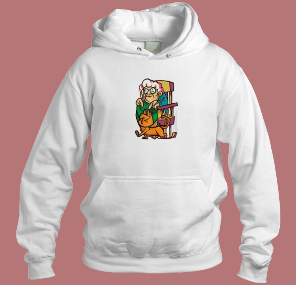 Grandma Knitting With Cat Hoodie Style