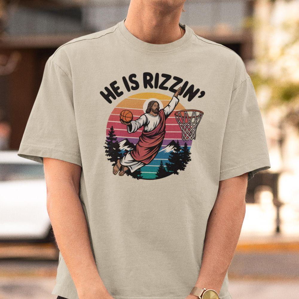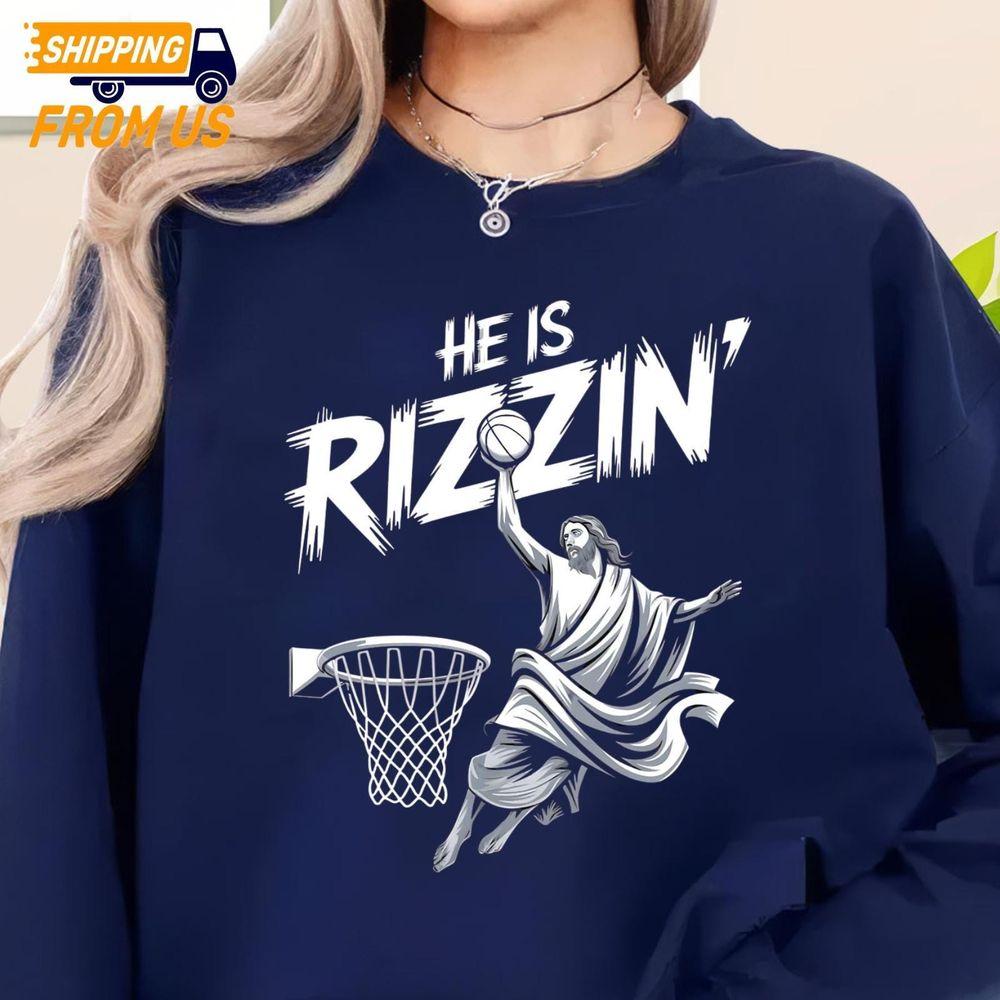 He Is Rizzin Funny Jesus Basketball Shirt