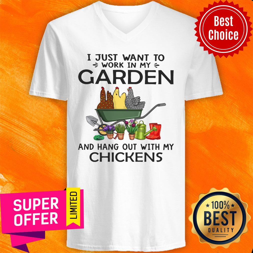 I Just Want To Work In My Garden And Hang Out With My Chickens V-neck