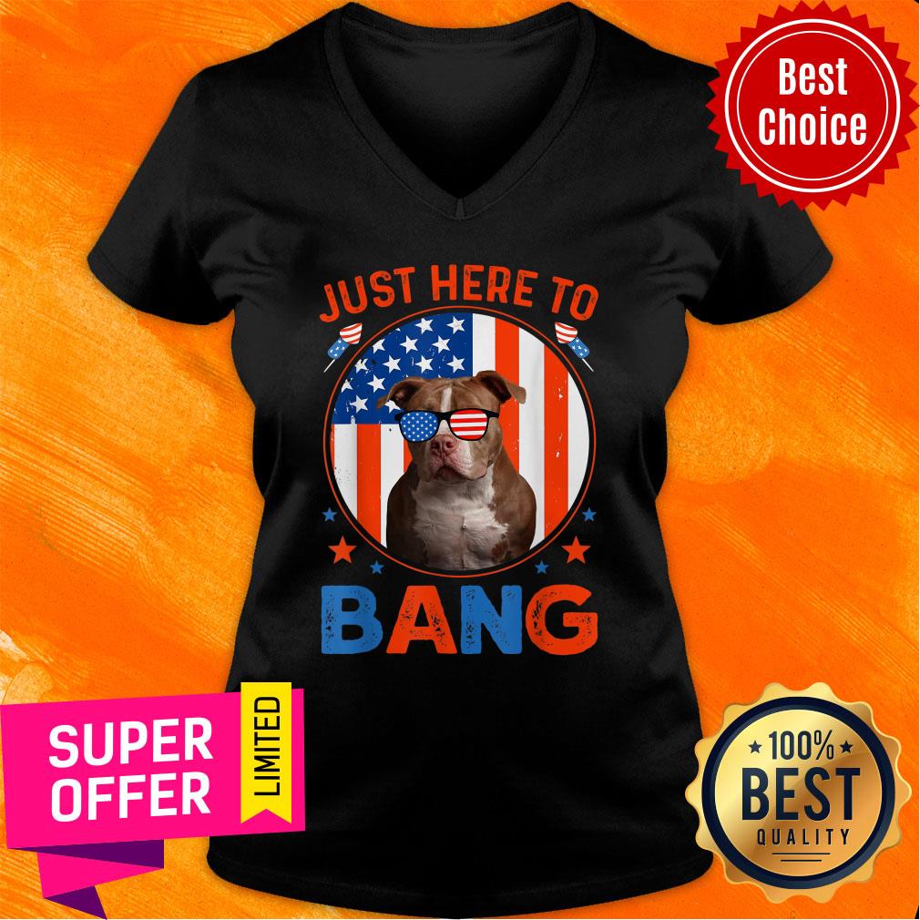 Just Here To Bang Pitbull 4th Of July Patriotic America Flag V-neck