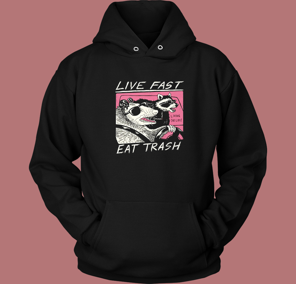 Live Fast Eat Trash Possum Hoodie Style